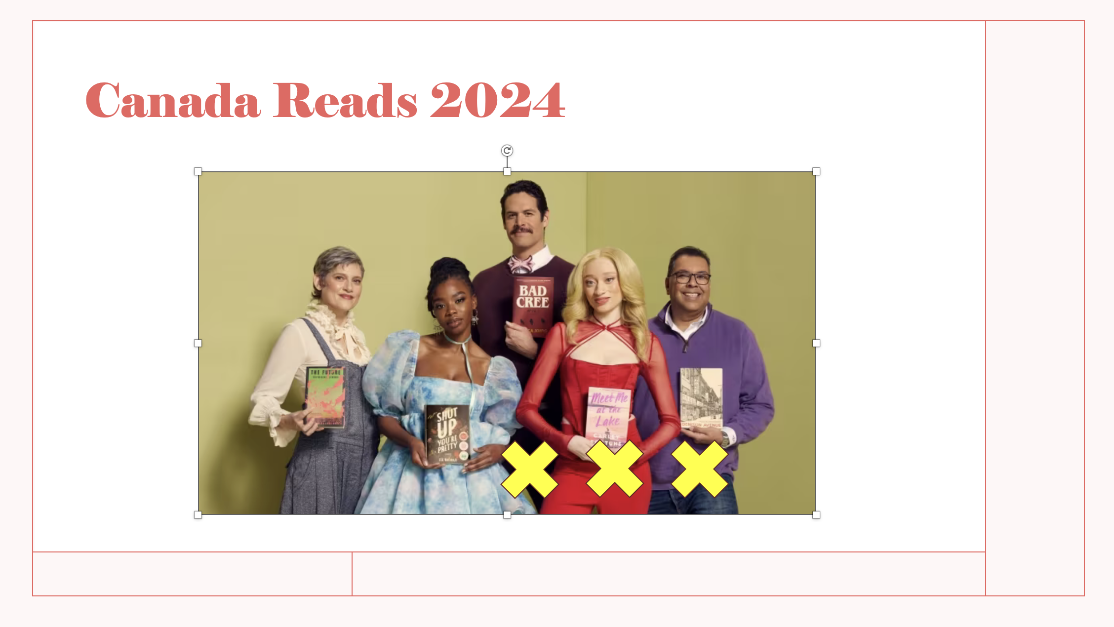 As the show wrapped up, Bad Cree was voted off. Although I was not a huge fan of this book, I am curious to understand why Shut Up Your has remained unscathed with no votes against it. For me, this was my 4th choice so I will be looking forward to more discussion about this book tomorrow.